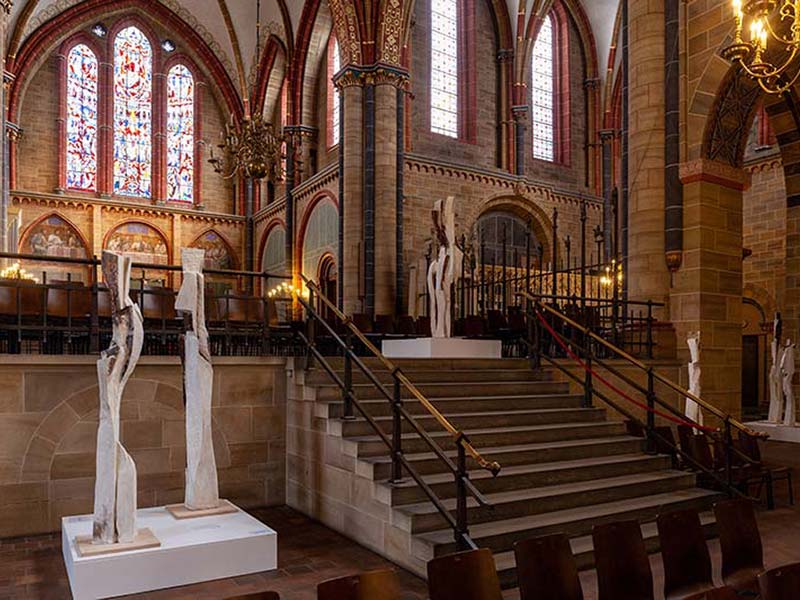 Die Skulpturen wollen ergreifen, Inneres sichtbar machen, in Spiritualität, aber auch auf ein humanes Menschenbild weisen. „In der Skulptur ereignet sich die Osmose von Raumweite und körperlichem Begreifen, oft eine schmerzhafte verkrampfte Dehnung, mit dem nie erreichten Ziel hin zu der Geraden oder zum Kreuz“